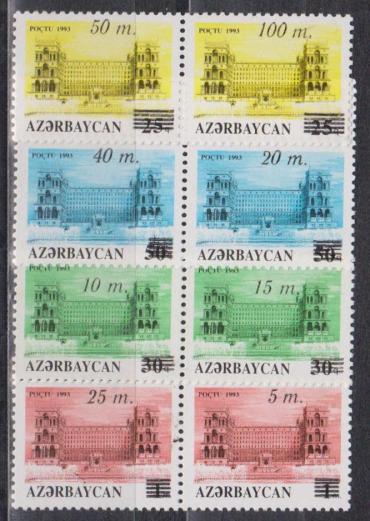 Азербайджан 1994, Стандарт, Дом Правительства, Надпечатка, 4 пары марок