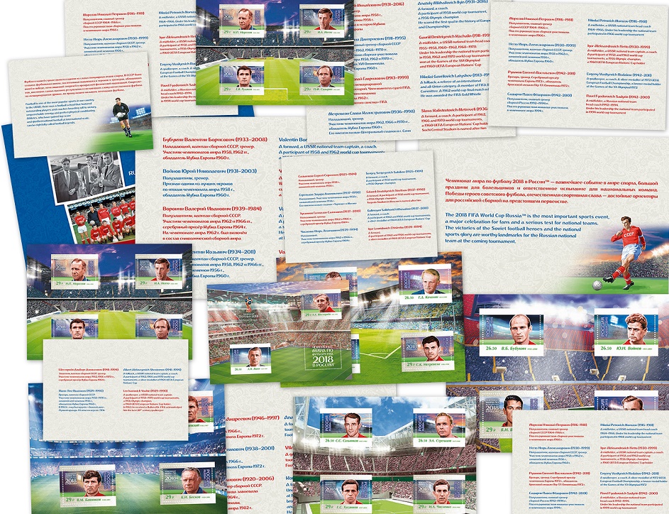 Russia, World Cup 2018, Russian Football Legends-1+2, 2015-2016, 7 Lux bl. in booklet