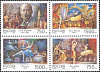 На полях почтового блока изображены: попугай Ара, жираф, тигр, манул, павлин, крокодил, бурый медвежонок,