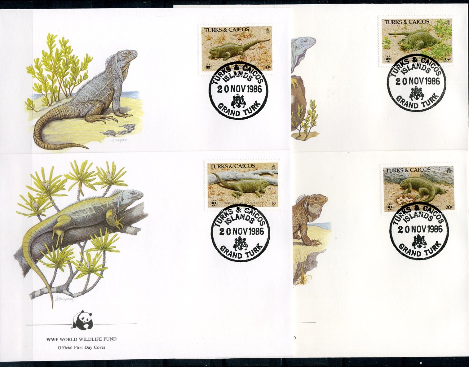 Turks & Caicos, WWF, Iguana, 1986, 4 FDC