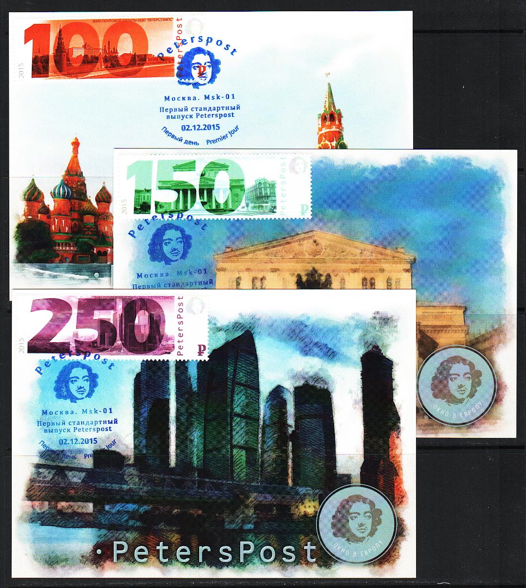 Russia, 2015, Peterstamps, Standard, Architecture, Views of Moscow, 6 postcards