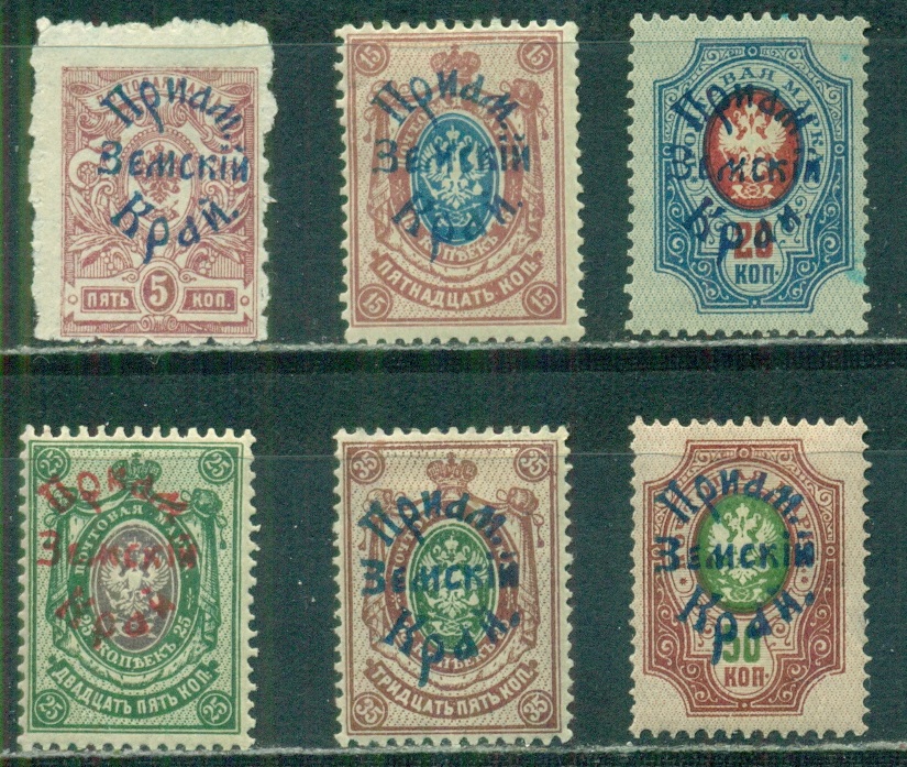 Priamursky Zemsky Krai 1922, 6 Overprint Stamps