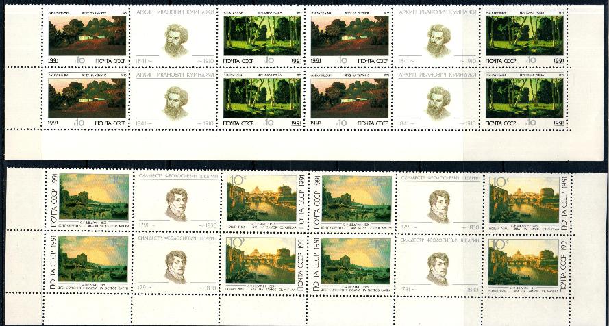 1991, № 6286-89, Russian Painting, 4 marks, coupling with coupons