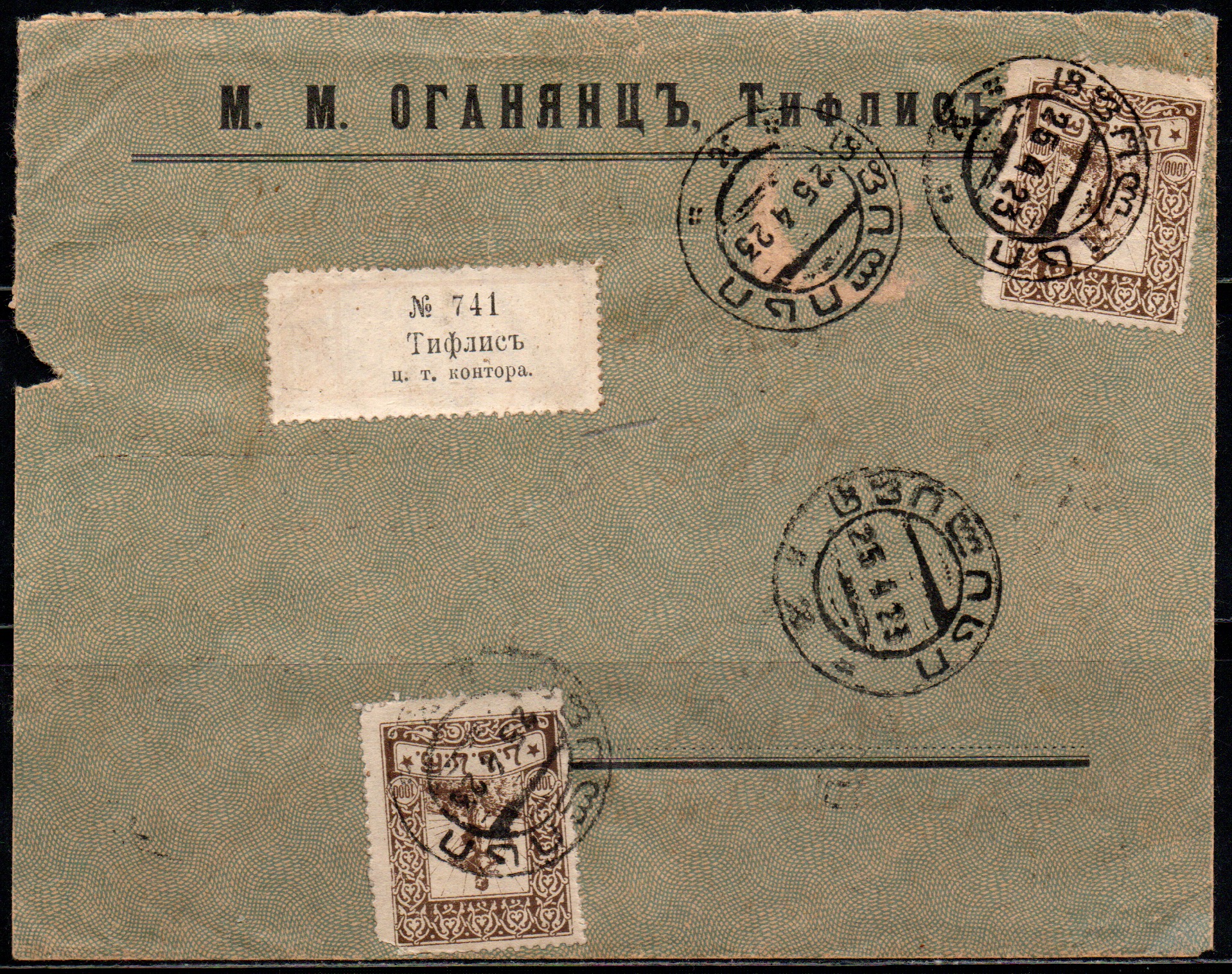 Заказное Почтовое Отправление " Тифлис 25.04.1923 ".