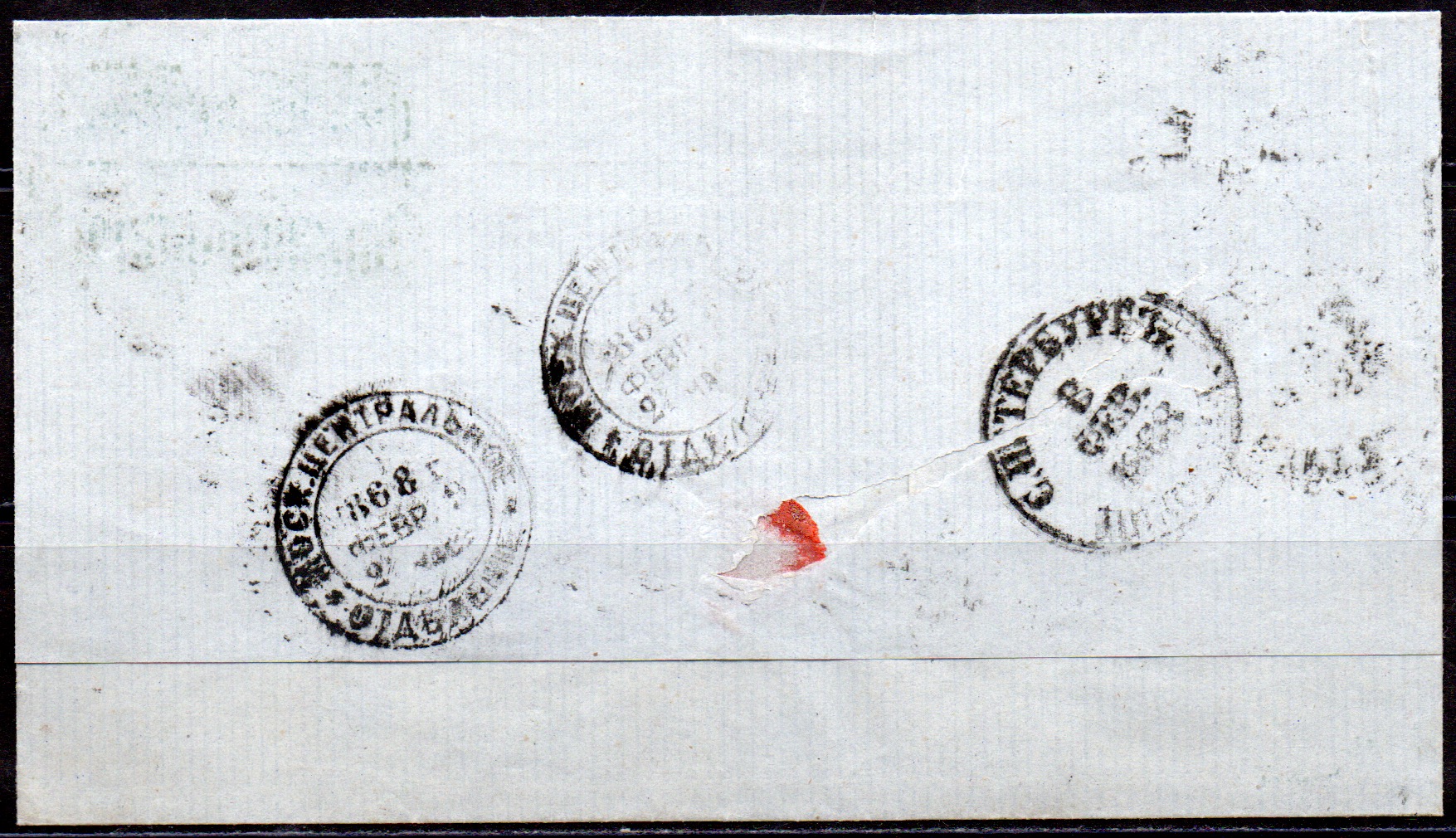 Штемпель отправления: "С.Петербург 8 фев. 1868 НИКОЛ.Ж.Д.".