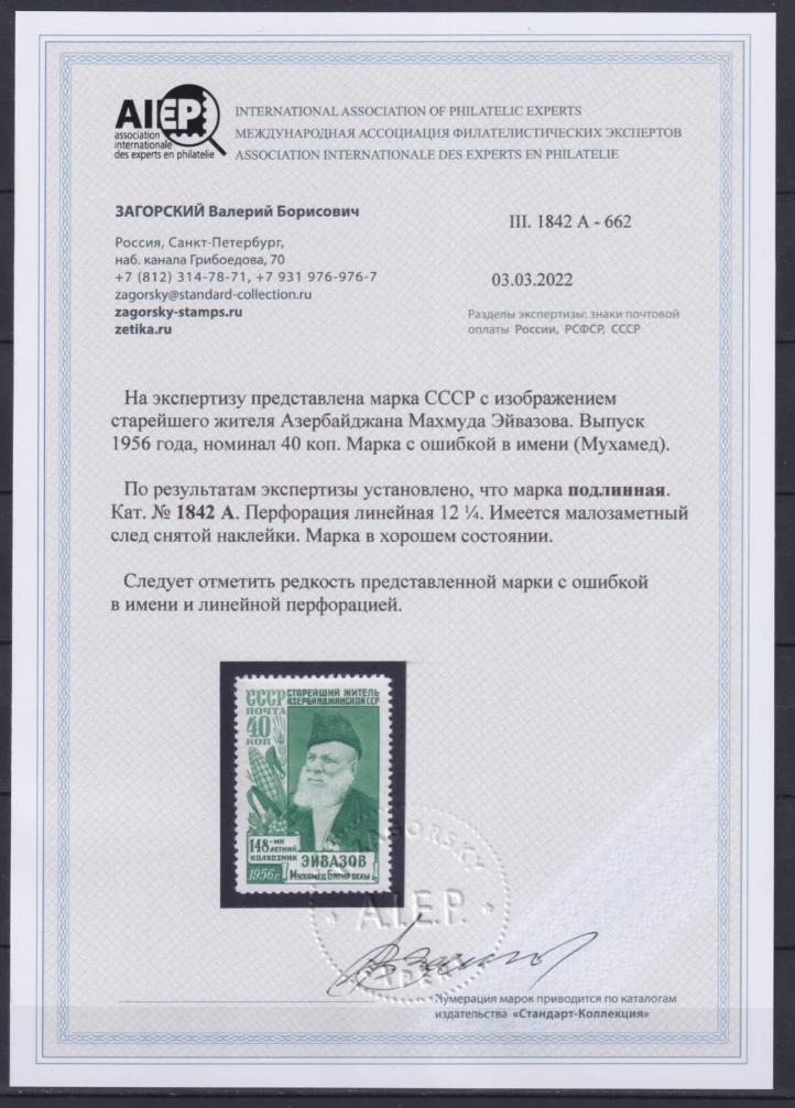 СССР 1956 Эйвазов, очень редкая линейная зубцовка.