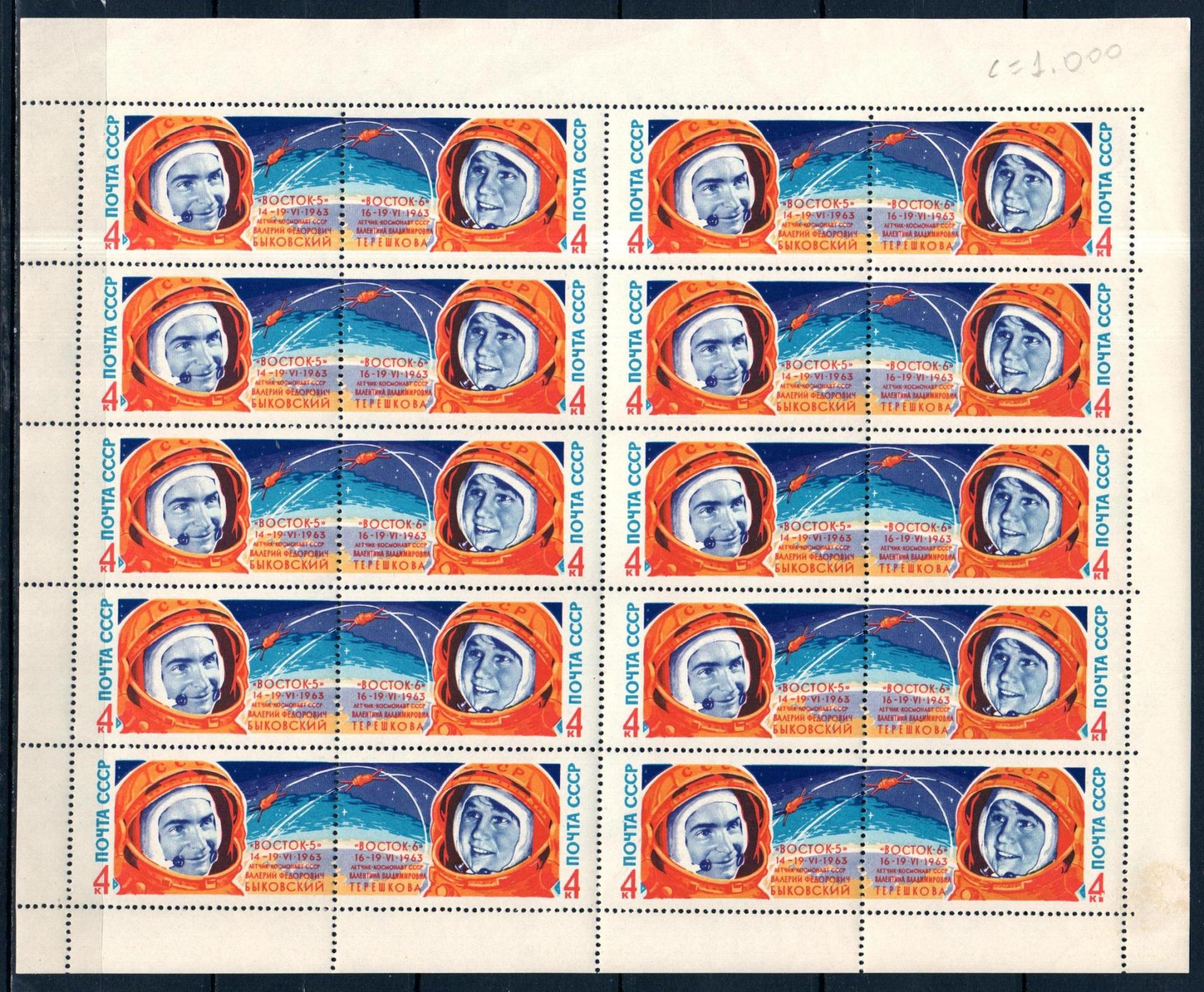 СССР, 1963, №2888-89, В.Быковский, В.Терешкова, деффект поля в правом нижнем углу, лист