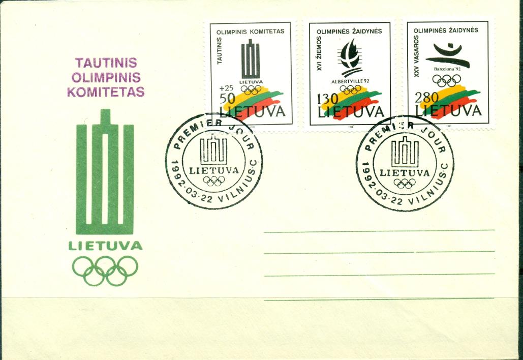 Lithuania, 1992, Olympic Games in Albertville, Barcelona, FDC