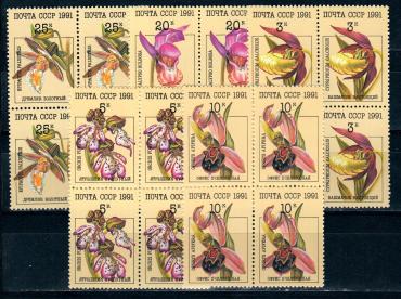 SU, 1991, Orchids, 5 bl of 4