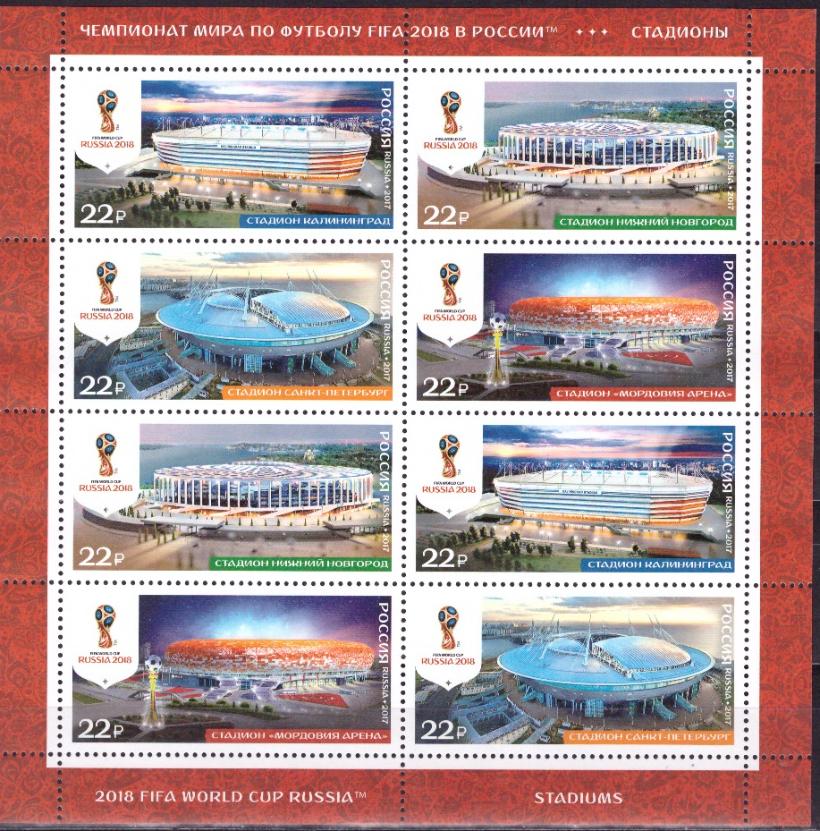 Russia, 2017, World Cup 2018, Stadiums-3, minisheet