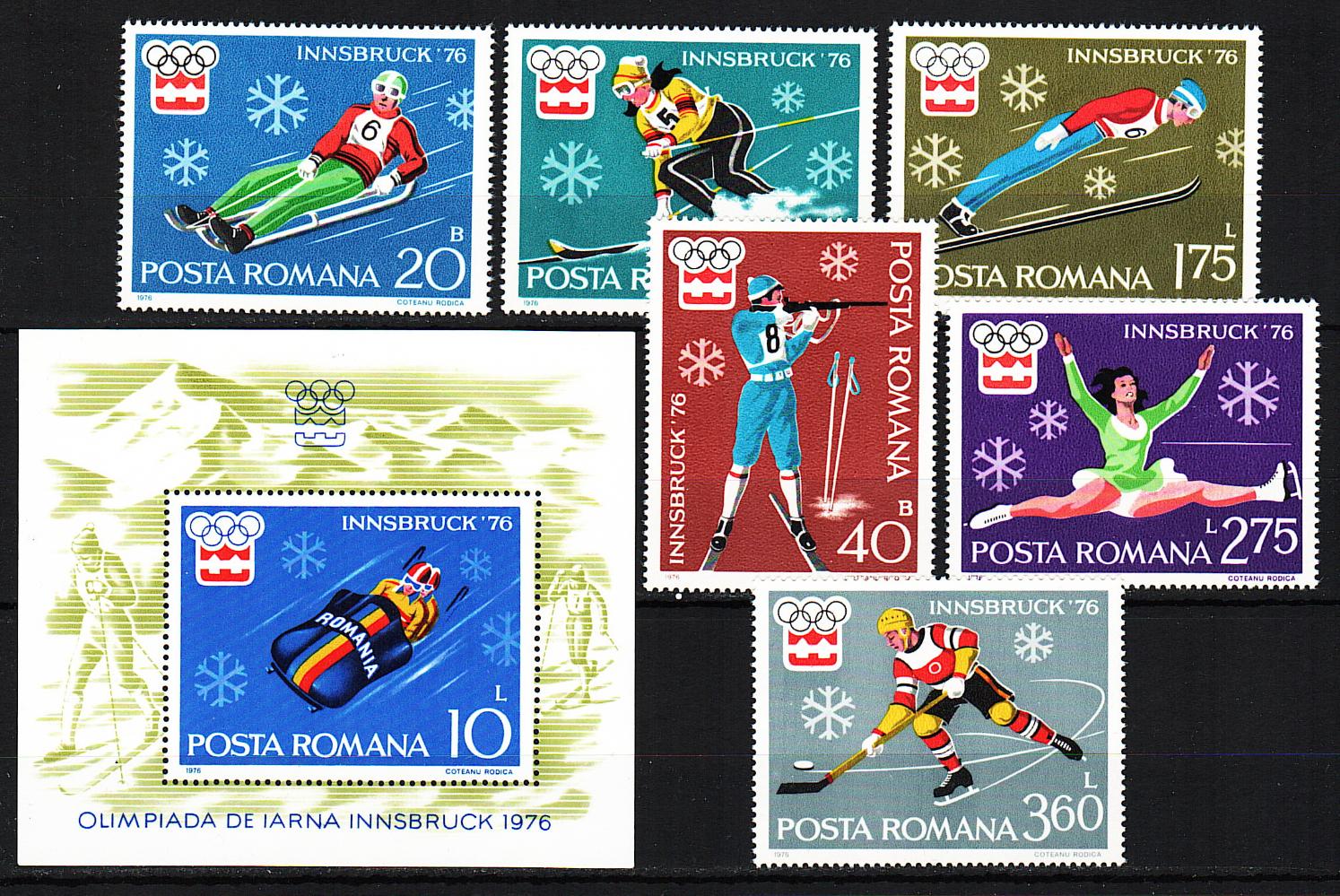 Romania, 1976, Winter Olympics Innsbruck, Hockey, Biathlon, 6v, s\s