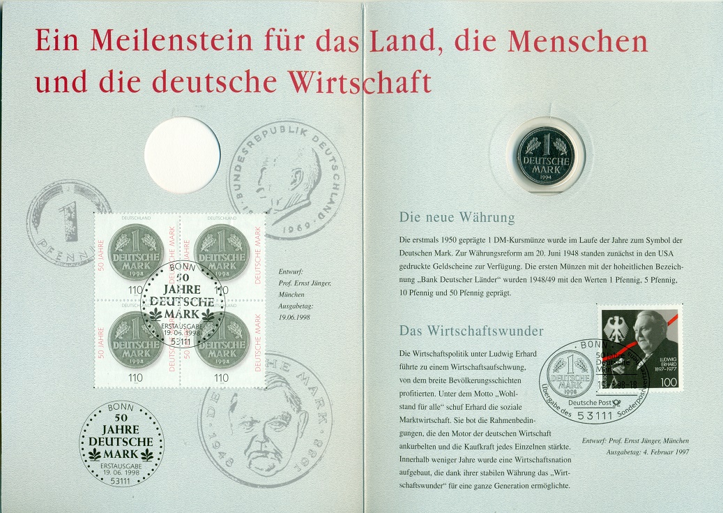Germany, 50 Years of "Deutsche mark" 1 DeM 1994 in booklet