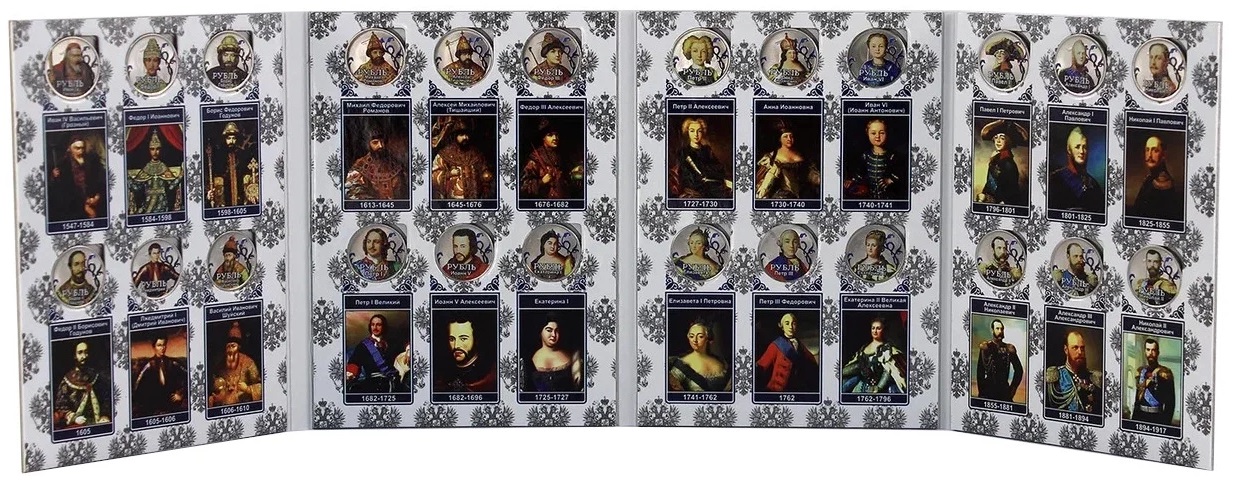 Russia, 2024, Russian Emperors 24 colored coins in album