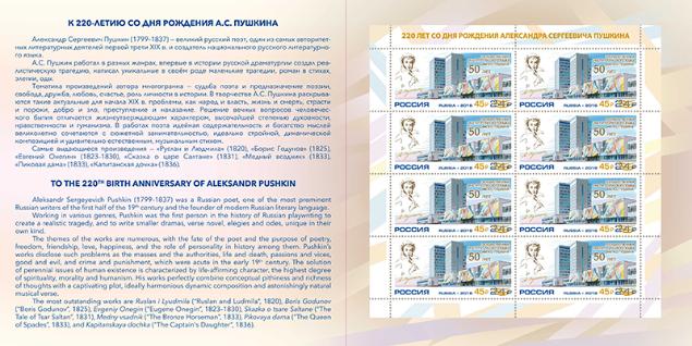 Russia, 2019, A.Pushkin, overprinted sheet, special pack
