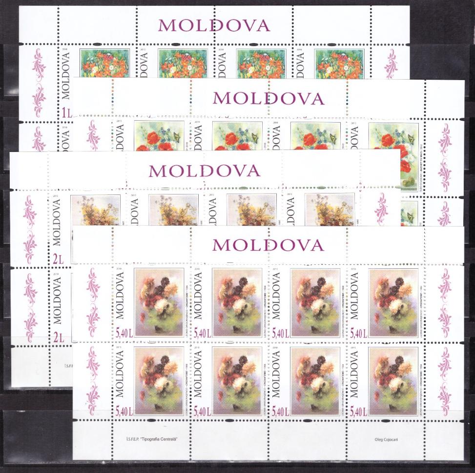 Moldova, Flowers in Painting, 2010, 4 sheets
