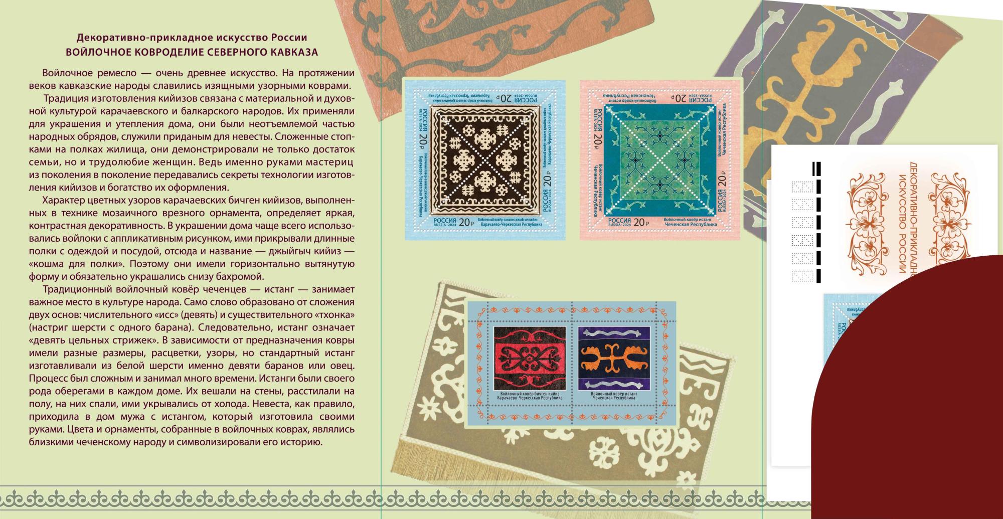 - квартблок №3264 "Серия «Декоративно-прикладное искусство России. Войлочное ковроделие». Войлочный ковёр-занавес джыйгыч кийиз. Карачаево-Черкесская Республика";