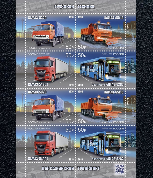Russia, 2026, KAMAZ-trcuks, minisheet