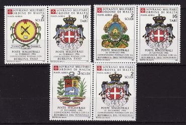 Order of Malta, 1986, Coats of arms, Postal services, 6v
