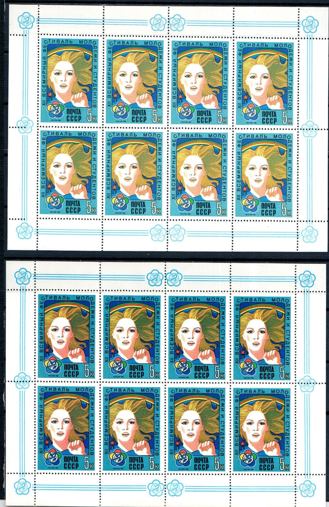 СССР, 1985, №5614, Фестиваль, Синий и голубой малые листы