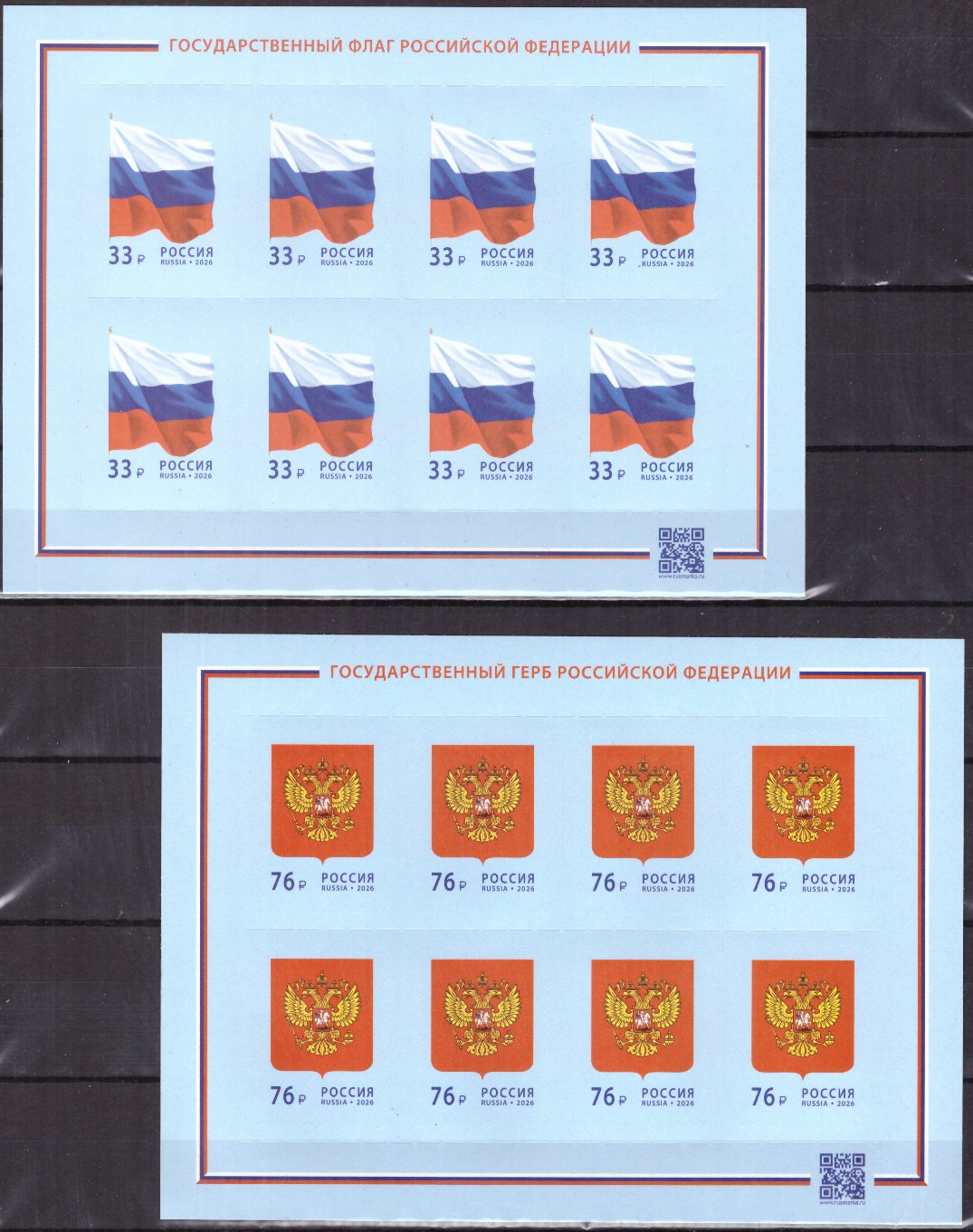 Россия, 2026, Государственный Флаг и Герб, 2 малых листа