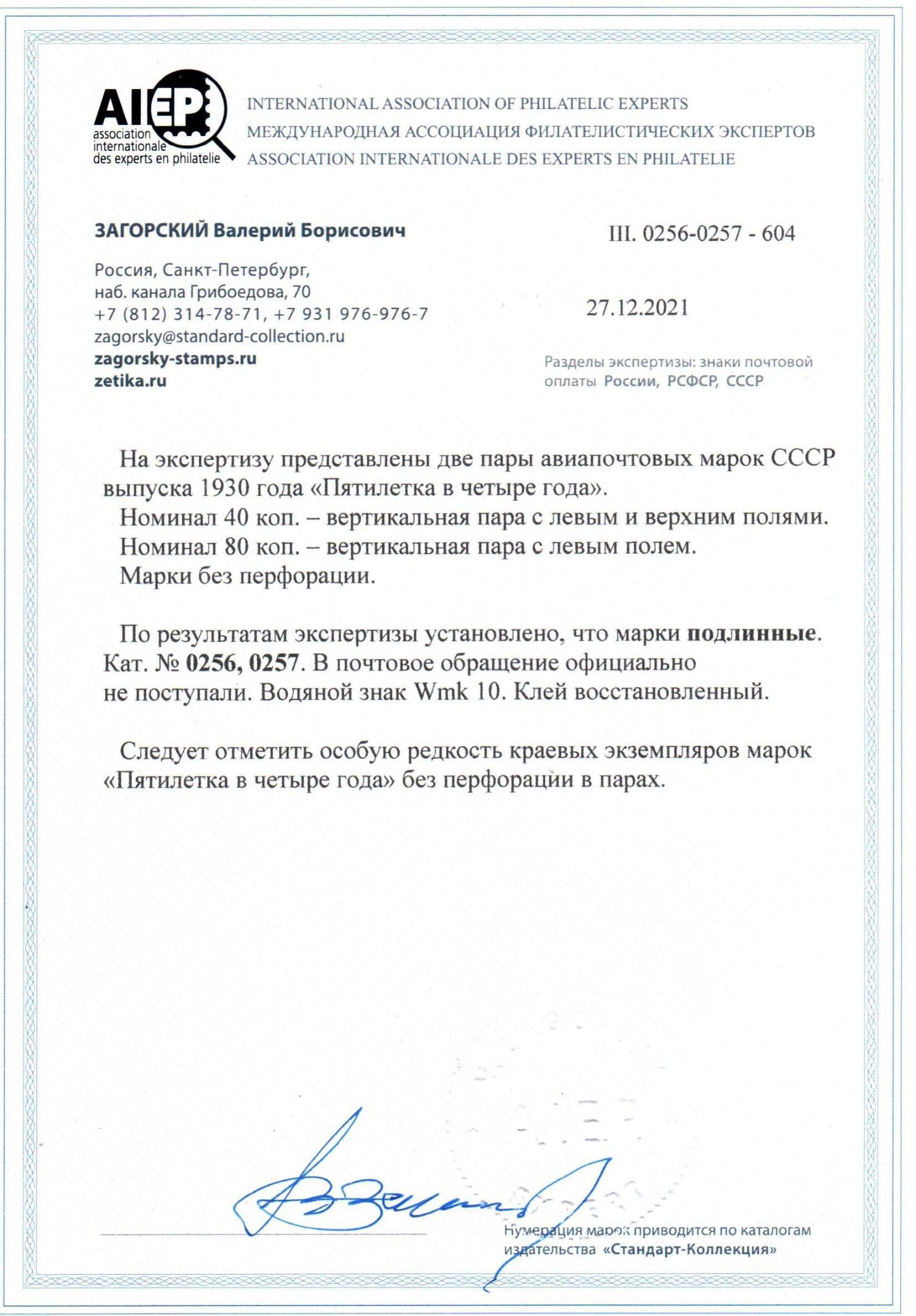СССР 1930, №360-361Б, 5 в 4 (Цеппелин) без зубцов. в паре (**). Сертификат