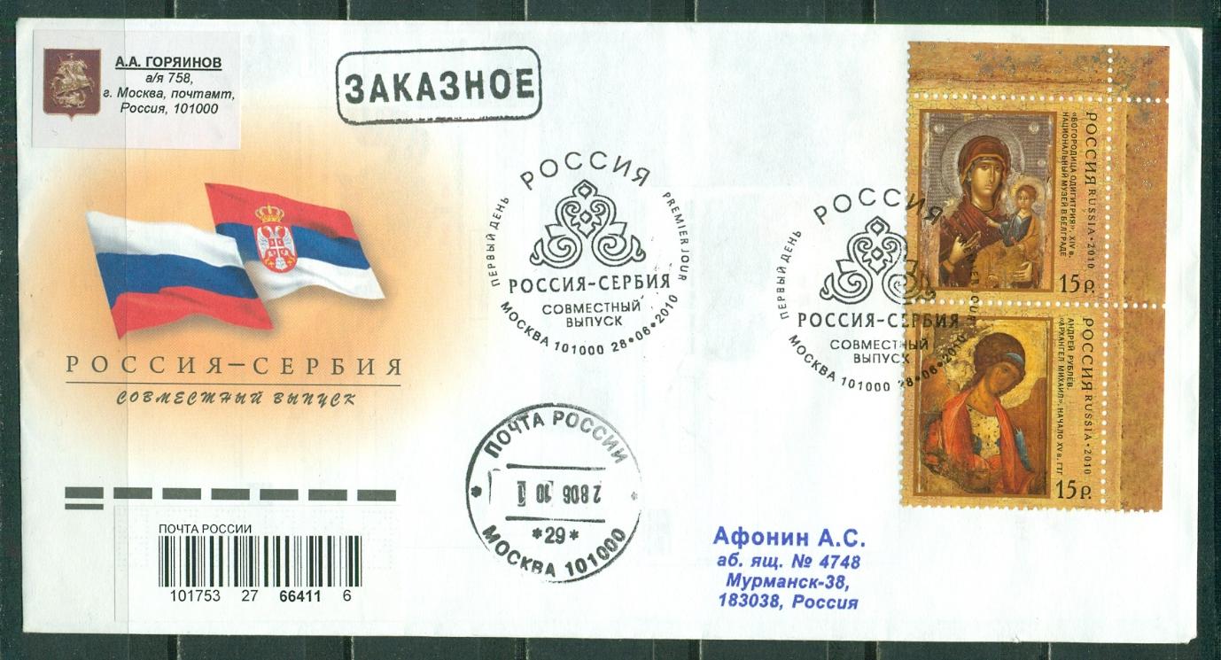 Россия, 2010, Иконы, Совместно с Сербией, КПД. прошедший почту