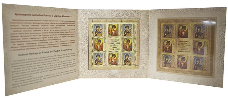 В обложке -сувенирный блок в художественной обложке «Культурное наследие России и Сербии. Иконопись», в который вошли почтовые марки 2010 года и сувенирный лист,