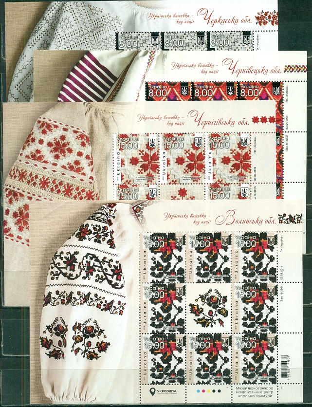 Украина, 2019, Вышиванки. 4 листа с купонами