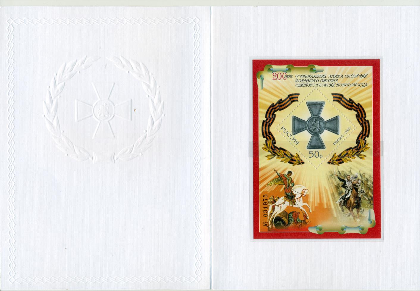 Россия, 2007, 200 лет Знака Ордена Святого Георгия Победоносца блок буклет