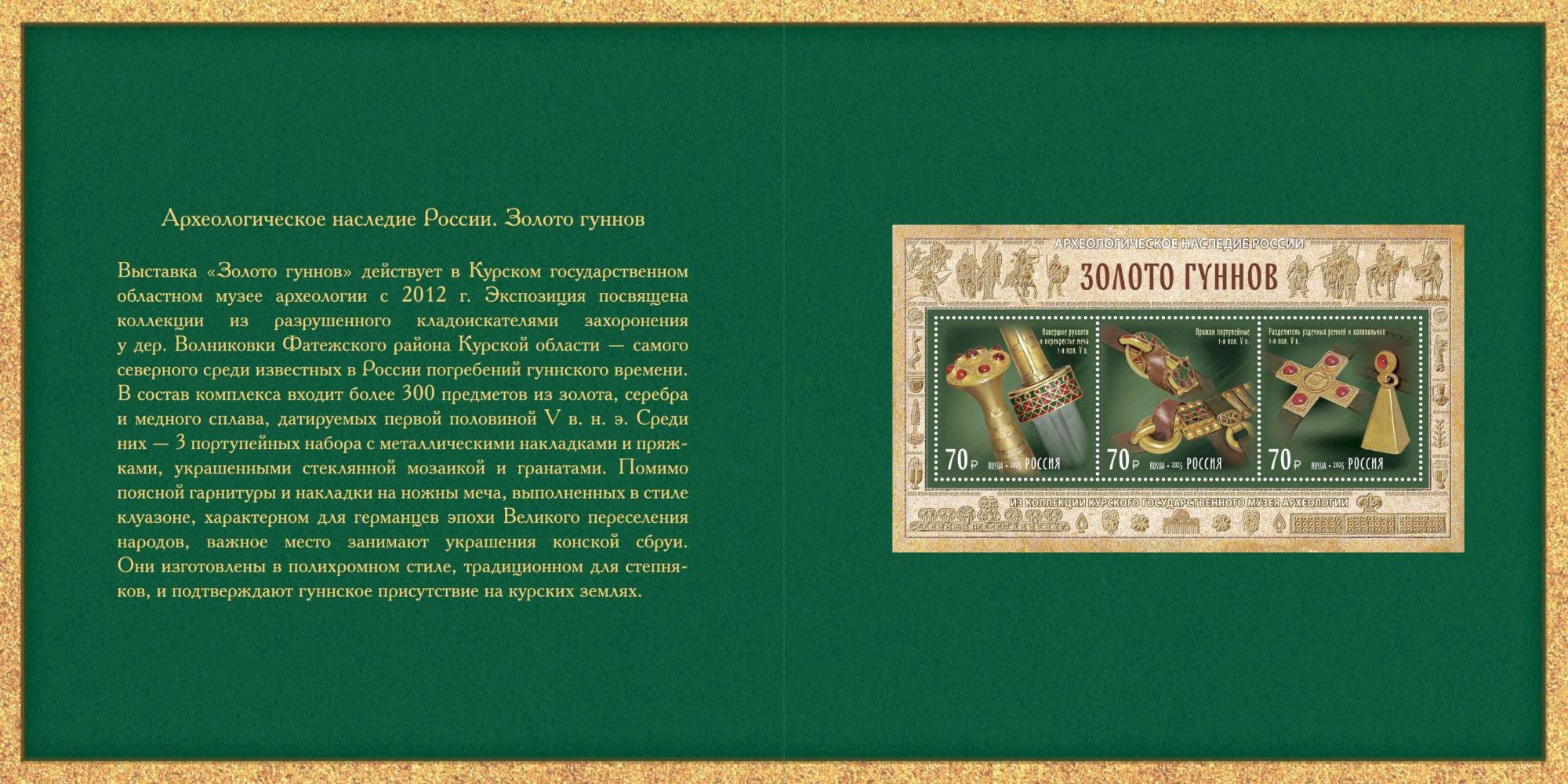 Россия, 2025, «Археологическое наследие России». Золото гуннов, блок т .II в буклете