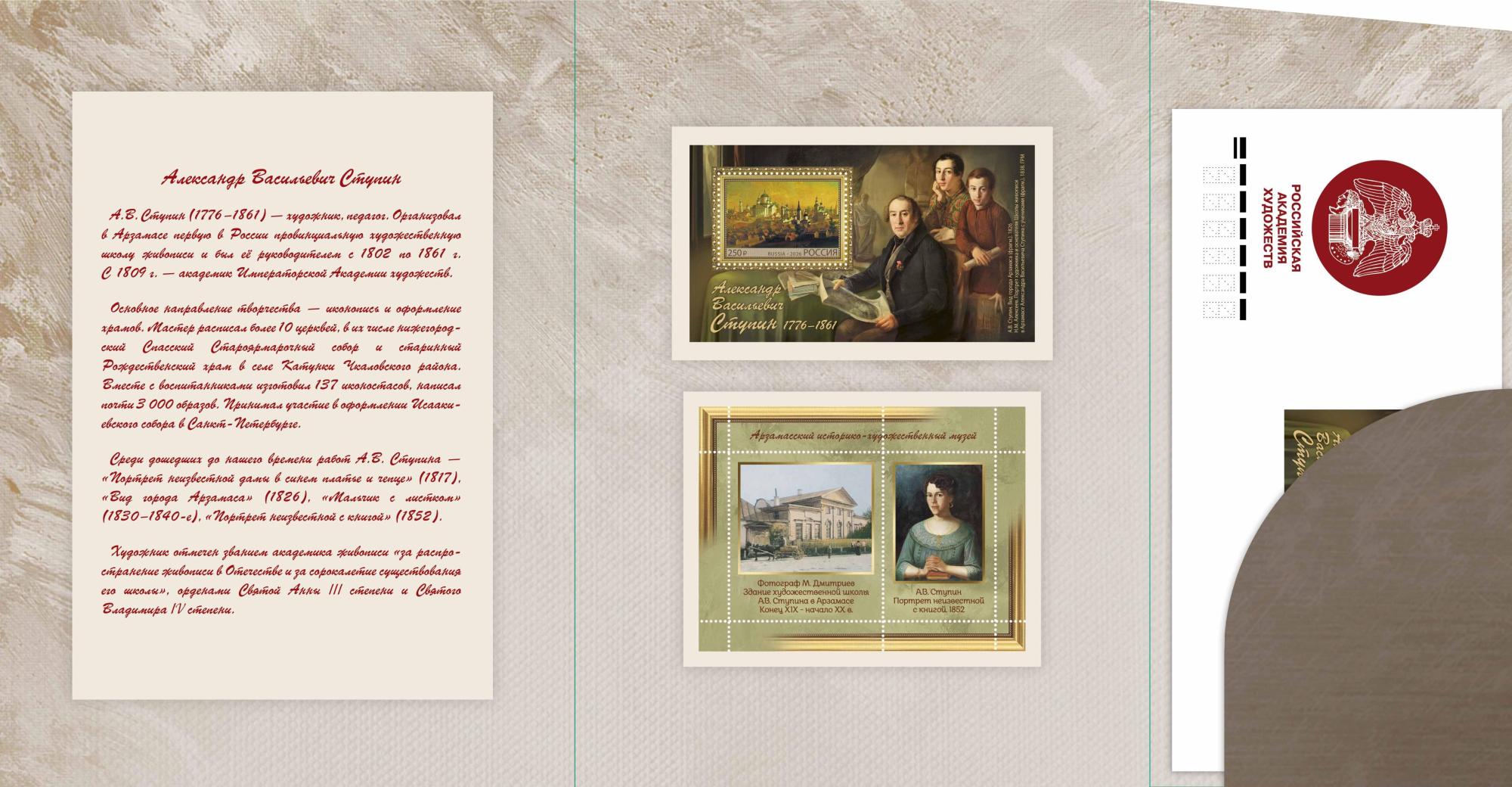 - блок №3579 "Российская академия художеств. 250 лет со дня рождения А.В. Ступина (1776–1861), художника, педагога";