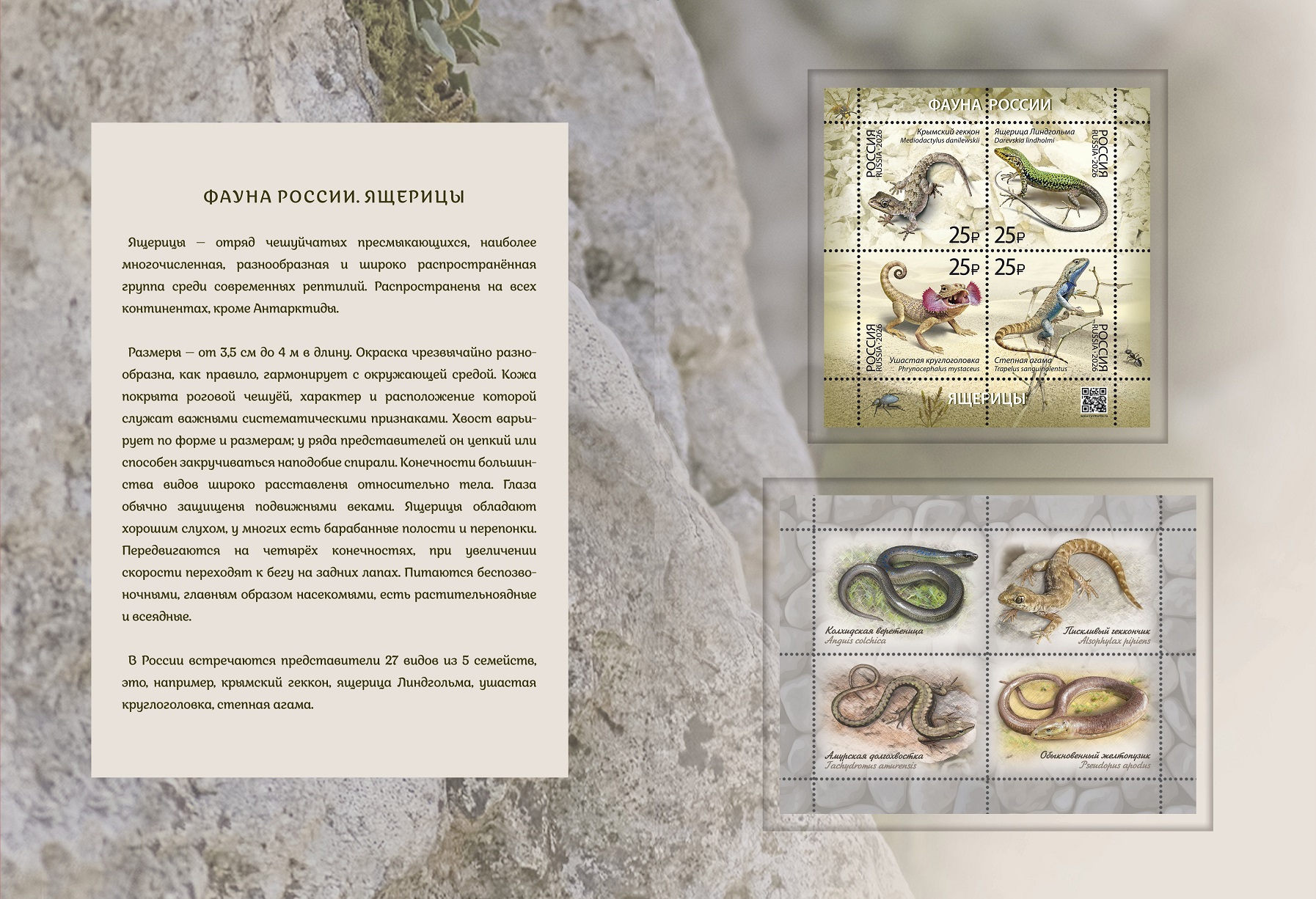 Россия, 2026,Фауна России. Ящерицы, блок тип II+сувенирный блок, в буклете