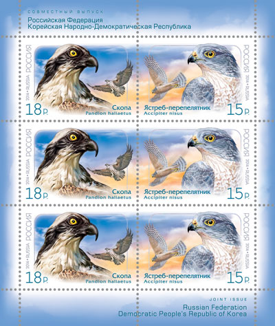 Россия, 2014, Хищные Птицы. совместный с КНДР, 3 серии в листе