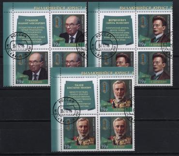Россия, 2016, Выдающиеся юристы России, 3 квартблока с купонами CTO (.)