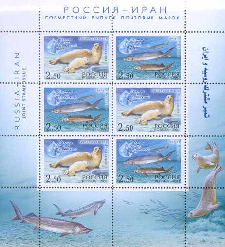 Россия, 2003, Тюлень, Осётр, Совместный с Ираном, малый лист
