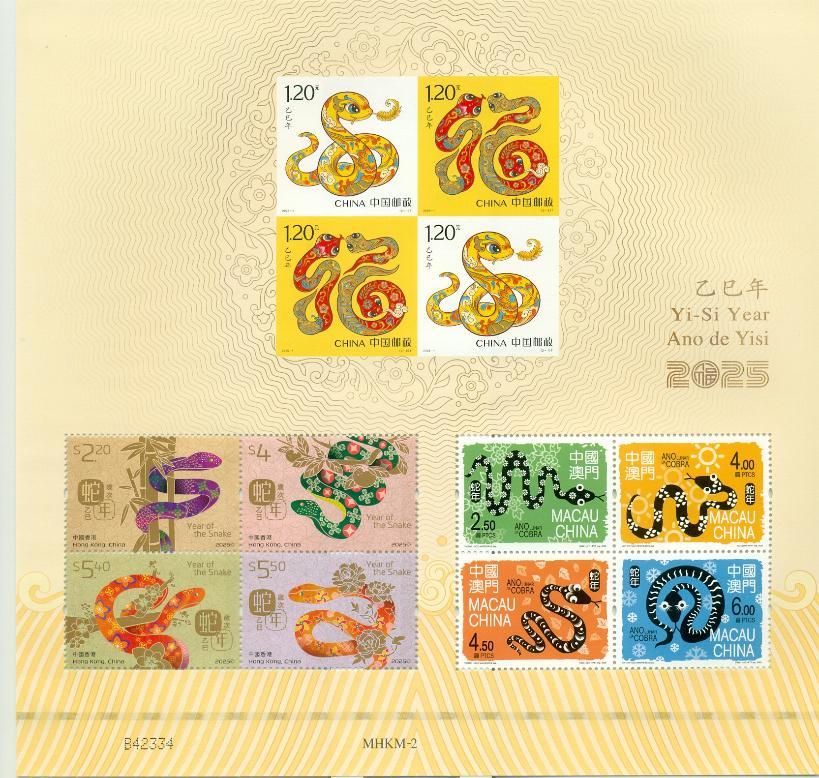 Китай + Макао + Гонконг, 2025, Новый Лунный Год Дракона, буклет ( лист с литерой В)
