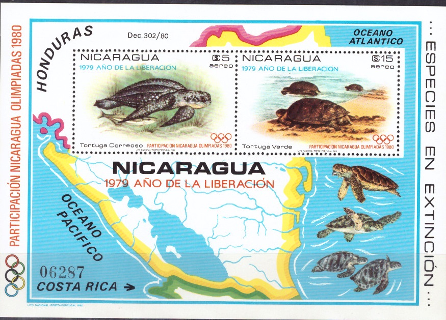 Никарагуа, 1980, Олимпиада-80, Черепахи, 2 марки в блоке