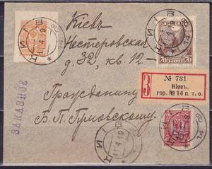 Украина 1919 год. Внутреннее Заказное письмо: Киев лит "д" !