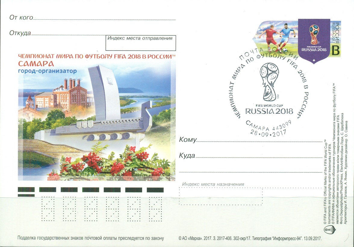 Россия, 2016, ЧМ 2018, Самара, карточка с Оригинальной Маркой со СГ