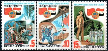 СССР, 1987, №5854-56, Международные космические полёты (Сирия), 3 марки