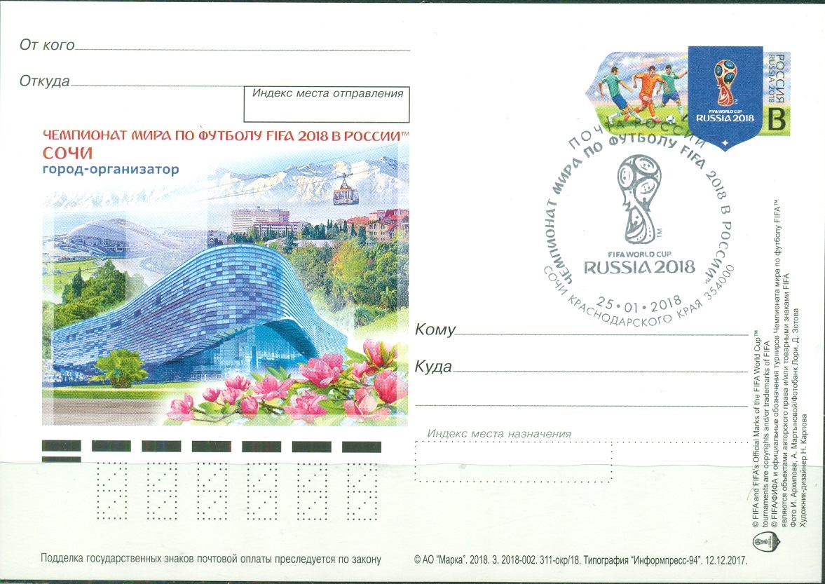 Россия, 2017, ЧМ 2018, Сочи, карточка с Оригинальной Маркой со СГ