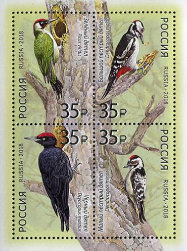 Россия, 2018. Фауна России, Дятлы, блок