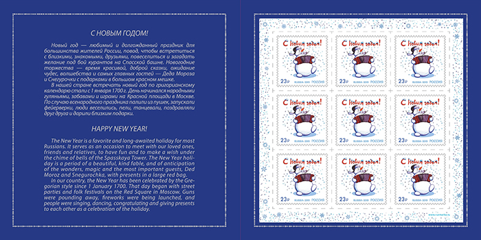 Россия, 2019, Новый Год, малый лист,тип 2, в буклете