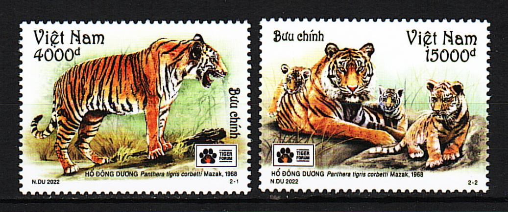 Вьетнам, 2022, Тигры, Дикие кошки, Форум по сохранению тигра, 2 марки