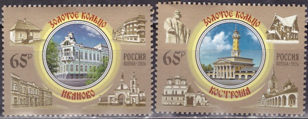 Россия, 2026, «Города Золотого кольца России». Иваново, Кострома, 2 марки