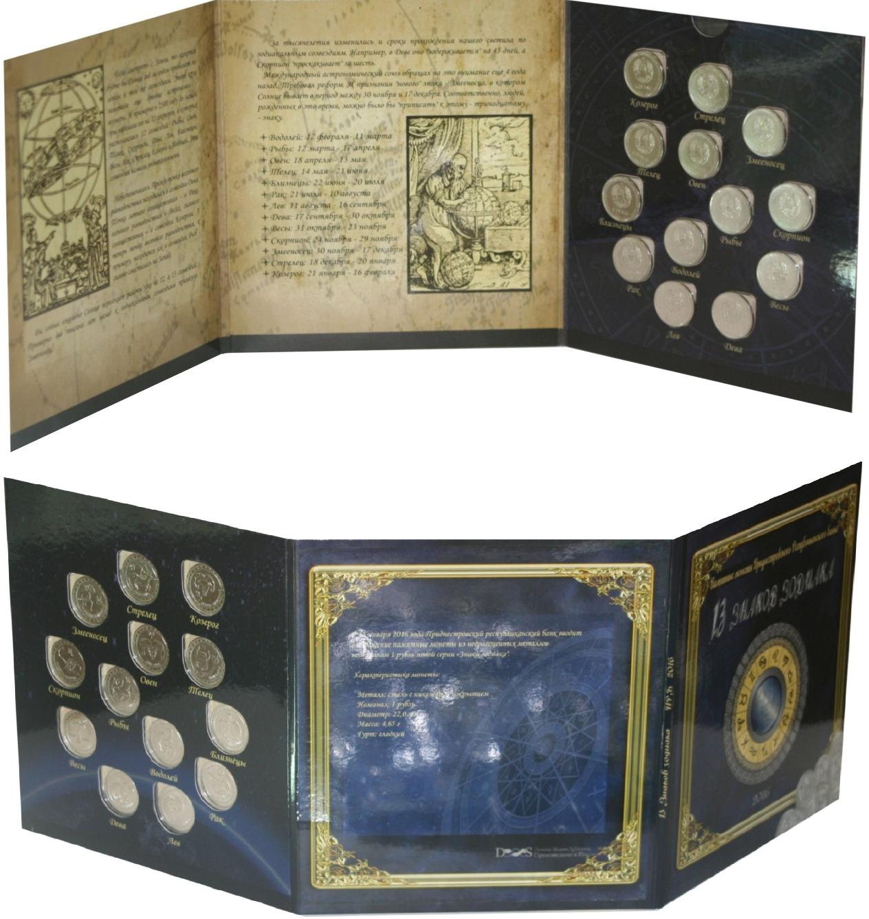 Transnistrija, 2016, 13x1 Rbl, "Zodiac signs"+ album
