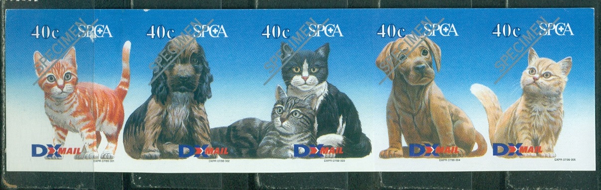 Новая Зеландия, Частная Почта DX mail, Кошки Собаки, 2003. надпечатка Образец - сцепка. Самоклейки