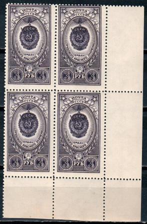 СССР, 1952-59, №1705, Ордена, смещение рисунка, квартблок с угловым полем MNH