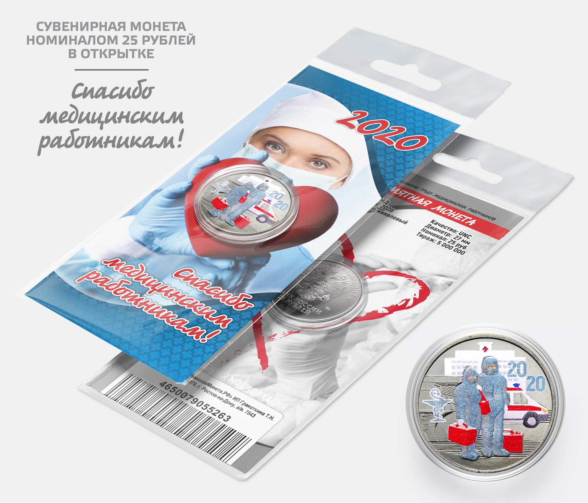 Russia, 2020, COVID 19, 25 Rbl colored in blue card
